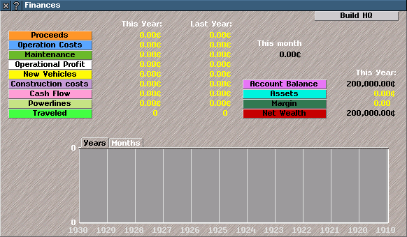 Tip: Some costs, starting balance and finances in game can be changed in the simuconf.tab file, which is located in the /simutrans/config/ directory.
