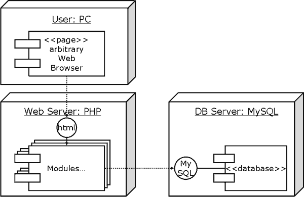 Both web and database servers may or may not run on single machine.